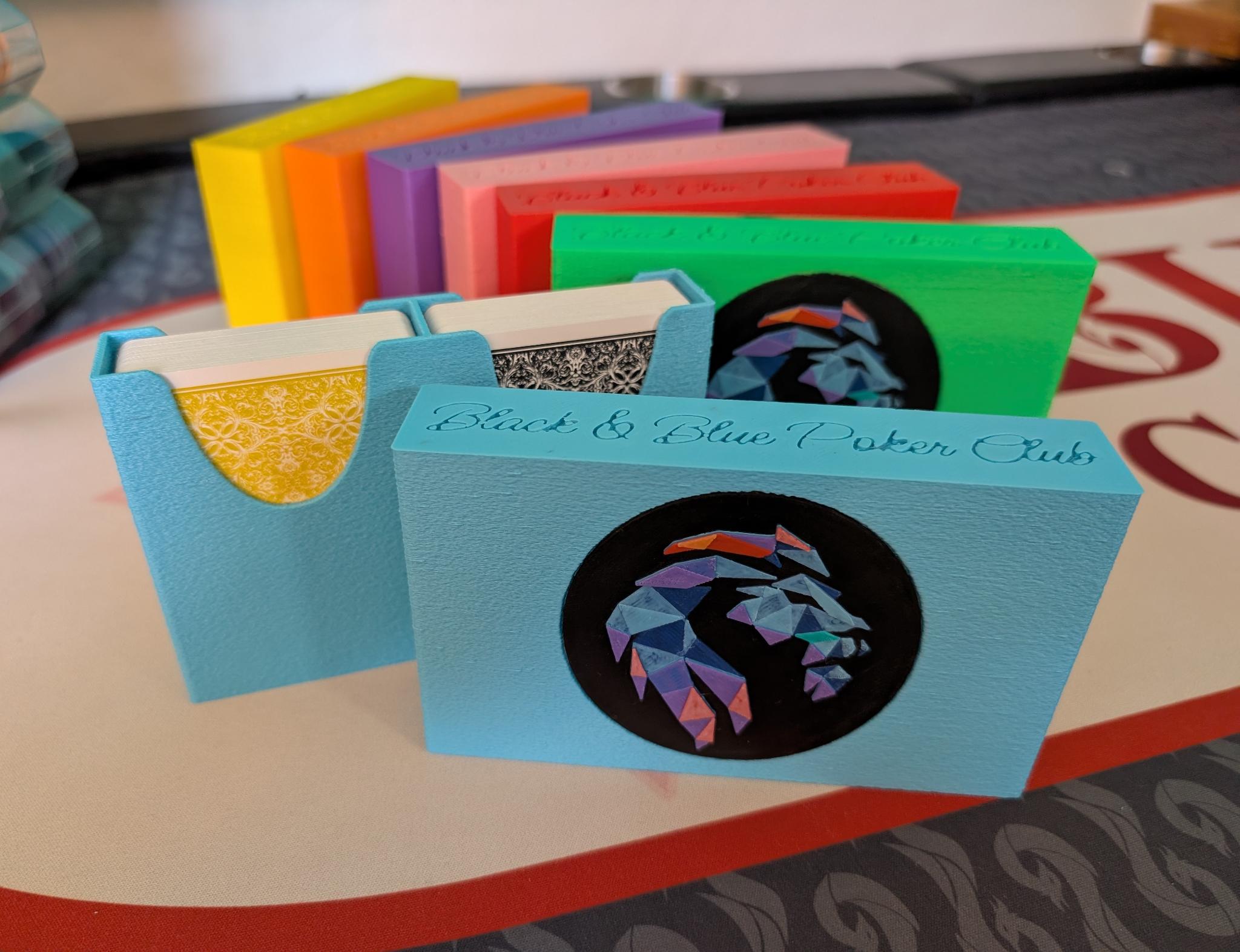Elevate your game with these custom 3D-printed deck boxes! Each one holds two decks (in poker or bridge size).