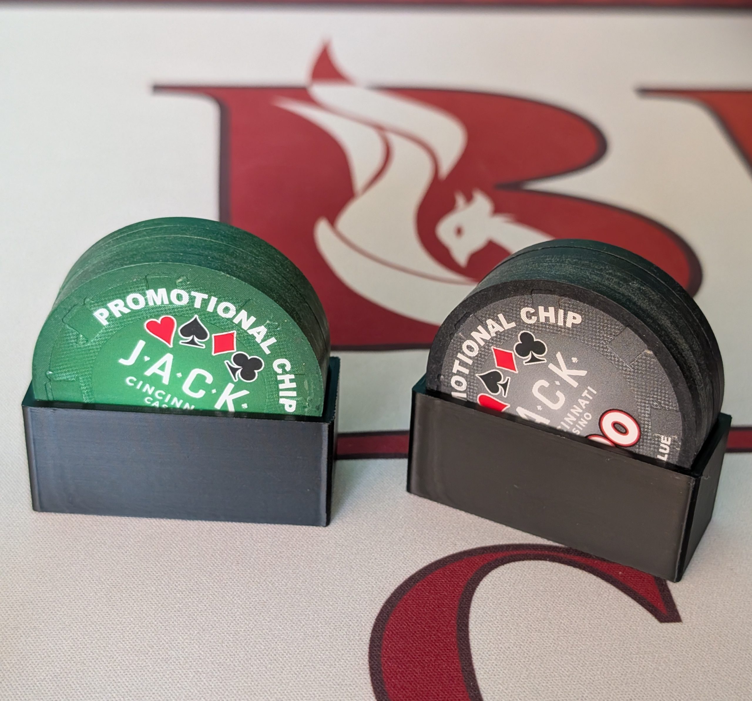 They hold a small stack (or two) of poker chips. We make these for all chip sizes and to hold various quantities of chips.